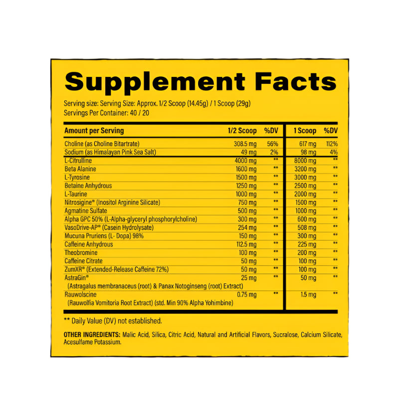 - 8 grams of Citrulline for unmatched endurance and blood flow