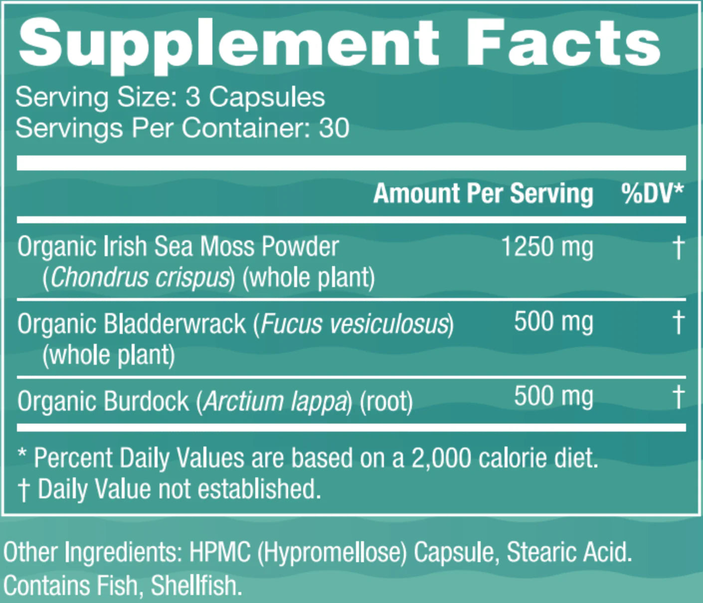 Gorilla Mind’s Sea Moss Elixir is crafted exclusively with Irish Sea Moss, Bladderwrack, and Burdock to provide more comprehensive natural immune and antioxidant support, without superfluous extras. By avoiding unnecessary extras, we optimized the capsule space to feature higher dosages of these 3, to ensure you get as potent of an active ingredient profile as you can in a convenient, capsule-based format.