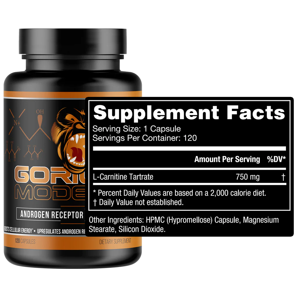 Gorilla Mode® AR (androgen receptor) is our L-Carnitine L-Tartrate formula that can be used for androgen receptor upregulation and fatty acid mobilization.