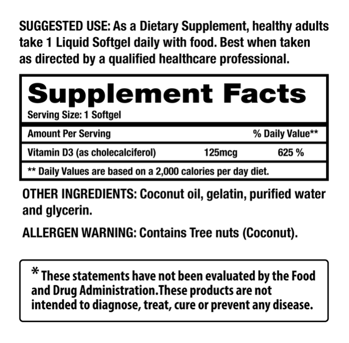 - SUNSHINE IN A BOTTLE: Take one capsule daily as a dietary supplement. Made with all-natural ingredients, this Vitamin D3 delivers just what it promises: 5,000 IU of Vitamin D3, which is 625% of your daily recommended dose.