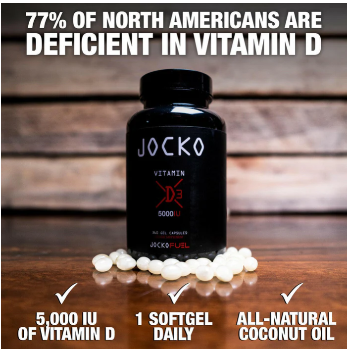 Increase your Vitamin D3 intake beyond what is derived from sunlight alone. D3 plays a vital role in numerous metabolic processes, including but not limited to bone health, blood pressure, mood, and immune system function. Jocko Fuel's D3 supplements provide the most potent and active form for maximum calcium absorption. Optimal Vitamin D levels can significantly impact overall well-being and performance.