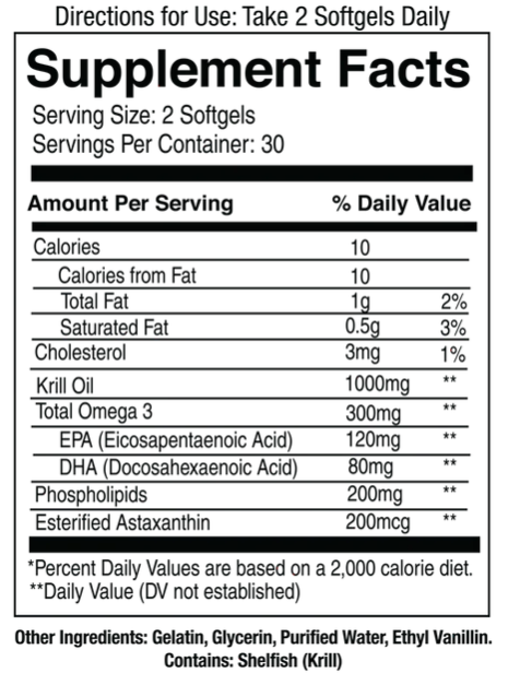 - PURE KRILL: Our wild caught Antarctic Krill contains essential Omega 3 fatty acids like DHA and EPA that your body can’t produce on its own, as well as phospholipids and the important super-antioxidant, astaxanthin that aren’t found in traditional fish oil supplements.